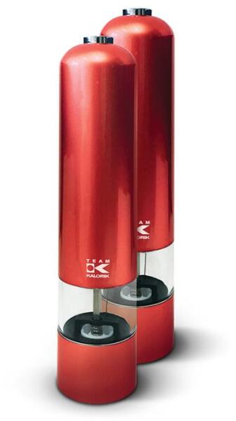 Kalorik TKG PSGR1050R Só- és borsőrlő szett-Működés 4db AAA elemmel-Kerámia örlőkések-őrlés szabályozás-Beépített világítás-Átlátszó fűszer tartó rekesz
